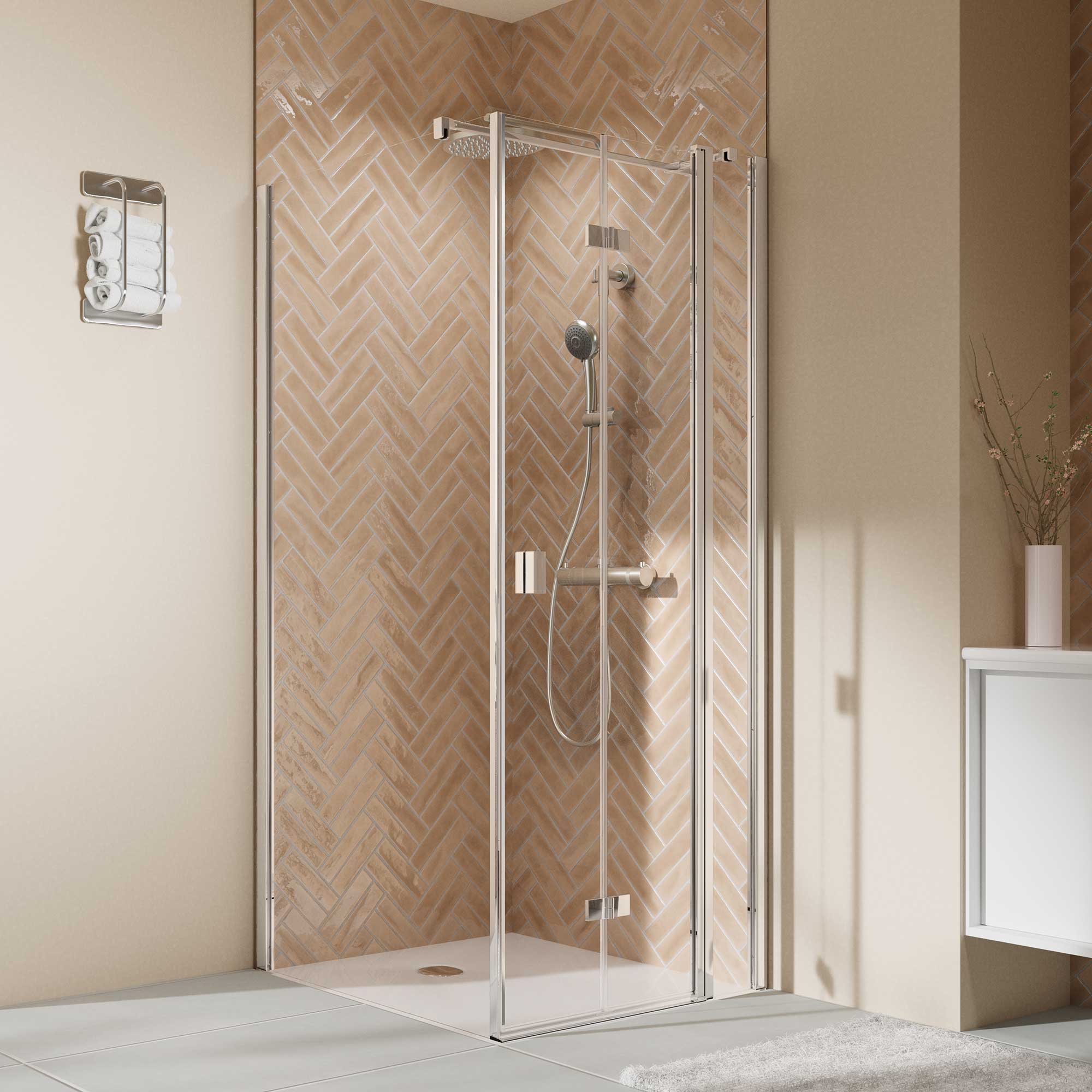 Produktinformationen "Elana 2.0 eckig Drehfalttür mit Festteil, Anschlag rechts, für SW/BSW neben der Wanne"