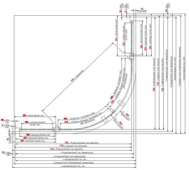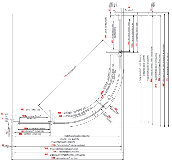 | Maß | Produktmaß li. | Produktmaß re. | Wanneneinbaumaß li. | Wanneneinbaumaß re. | Fliesenmaß li. | Fliesenmaß re. | Einstiegsbreite | Höhe + 35mm Stabilisator |