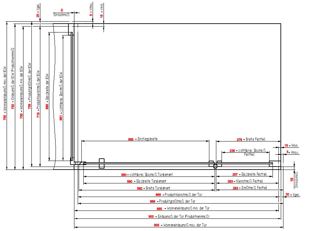 | Ausführung | Produktmaß | Wanneneinbaumaß | Fliesenmaß (Glasmitte auf Fuge) |